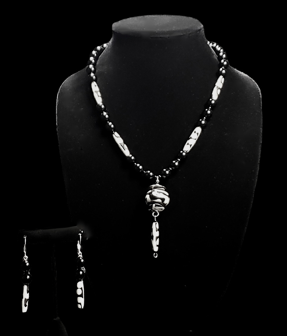 21″ Acrylic and Onyx Necklace Set with Matching Earrings