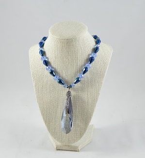 19″ Necklace with Royal blue assorted faceted glass beads and pendant.