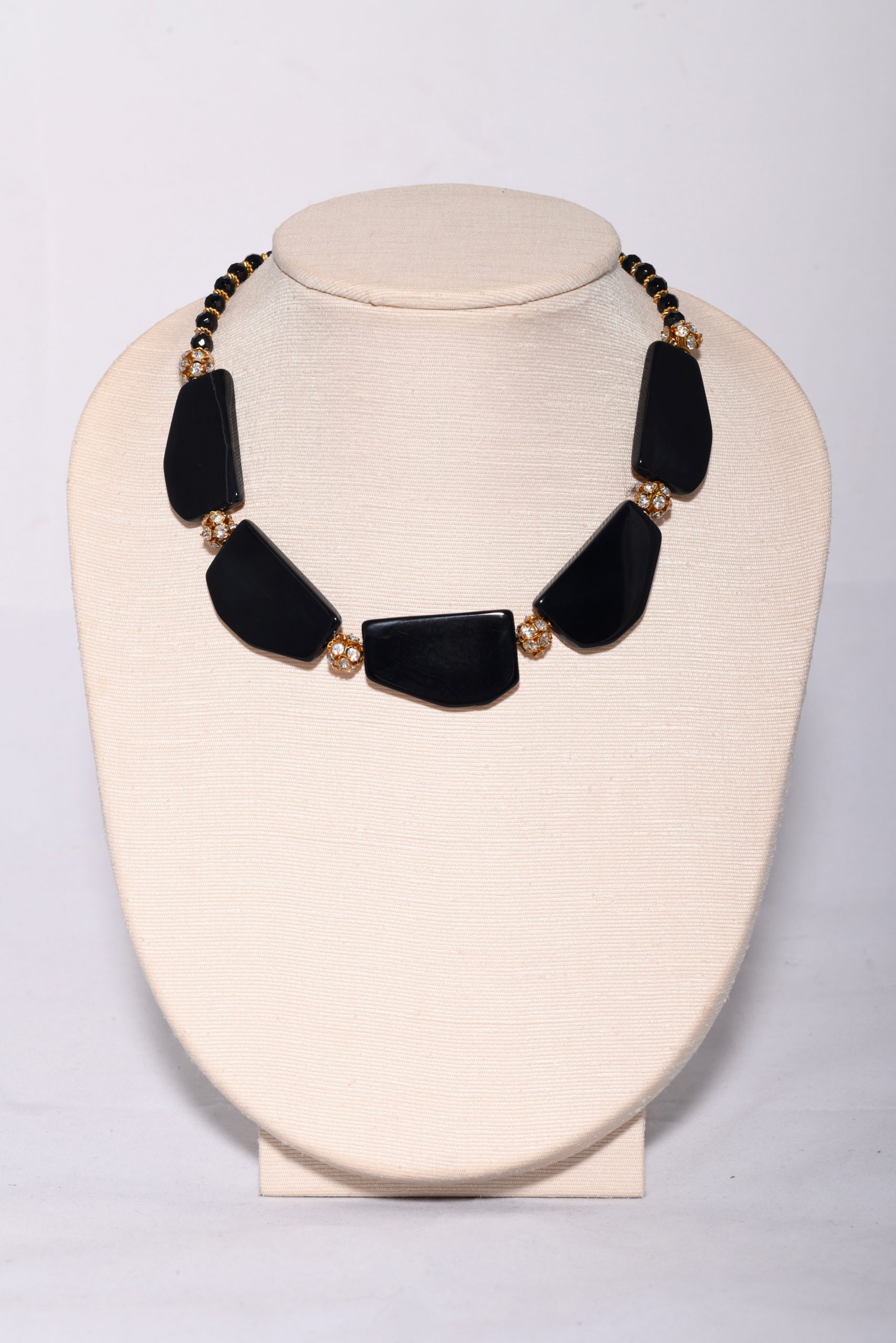 18″ Black Onyx and Round Rhinestone Spacers ~ Rhinestone encrusted magnetic closure