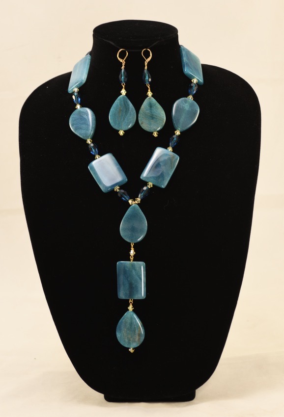 21.5″ Agate & Crystal with Matching Earrings