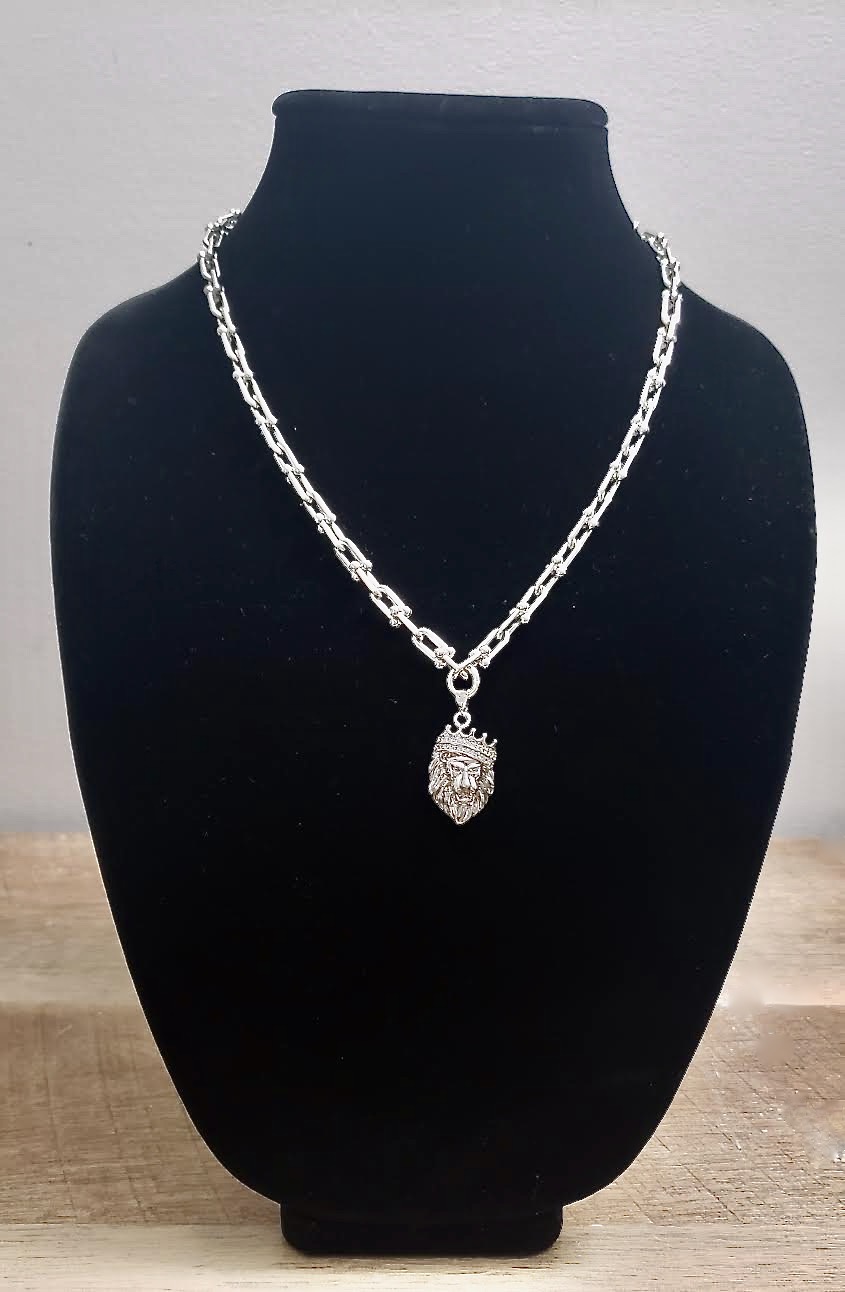 20″ Silve Chain necklace with Rhinestone Crusted Lion’s Head Pendant