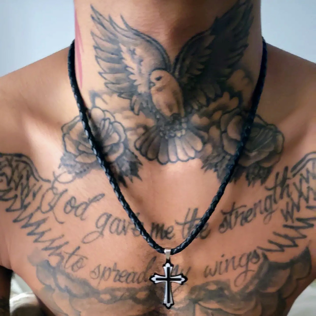 25″ Braided Leather Cord with Stainless Steel Cross; Stainless Steel Clasp with strong metal Magnet Clasp Black Plated Inner